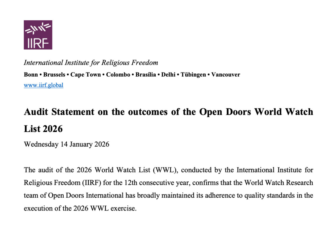 • BQ 896: Das IIRF veröffentlicht Prüfungsbericht zum Open Doors Weltverfolgungsindex 2026