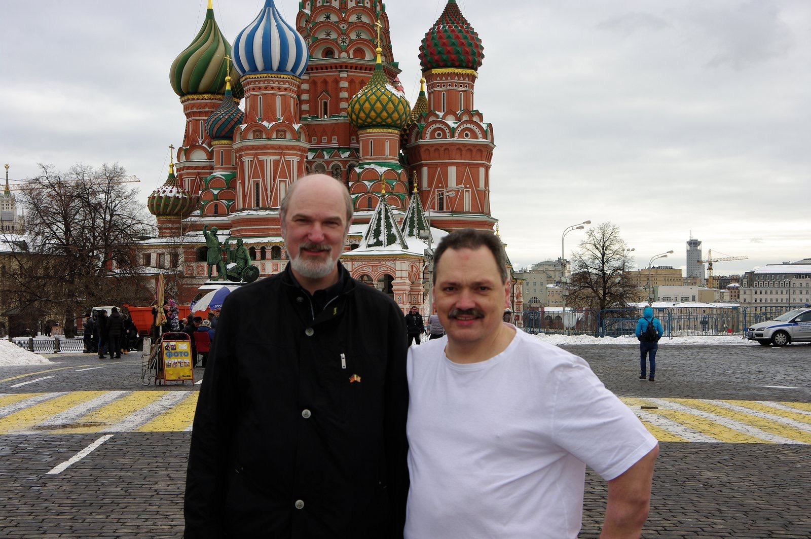 - Foto 6: Thomas Schirrmacher mit dem Generalsekretär der Russischen Evangelischen Allianz, Sergey Vdovin, vor dem Kreml © BQ/Thomas Schirrmacher