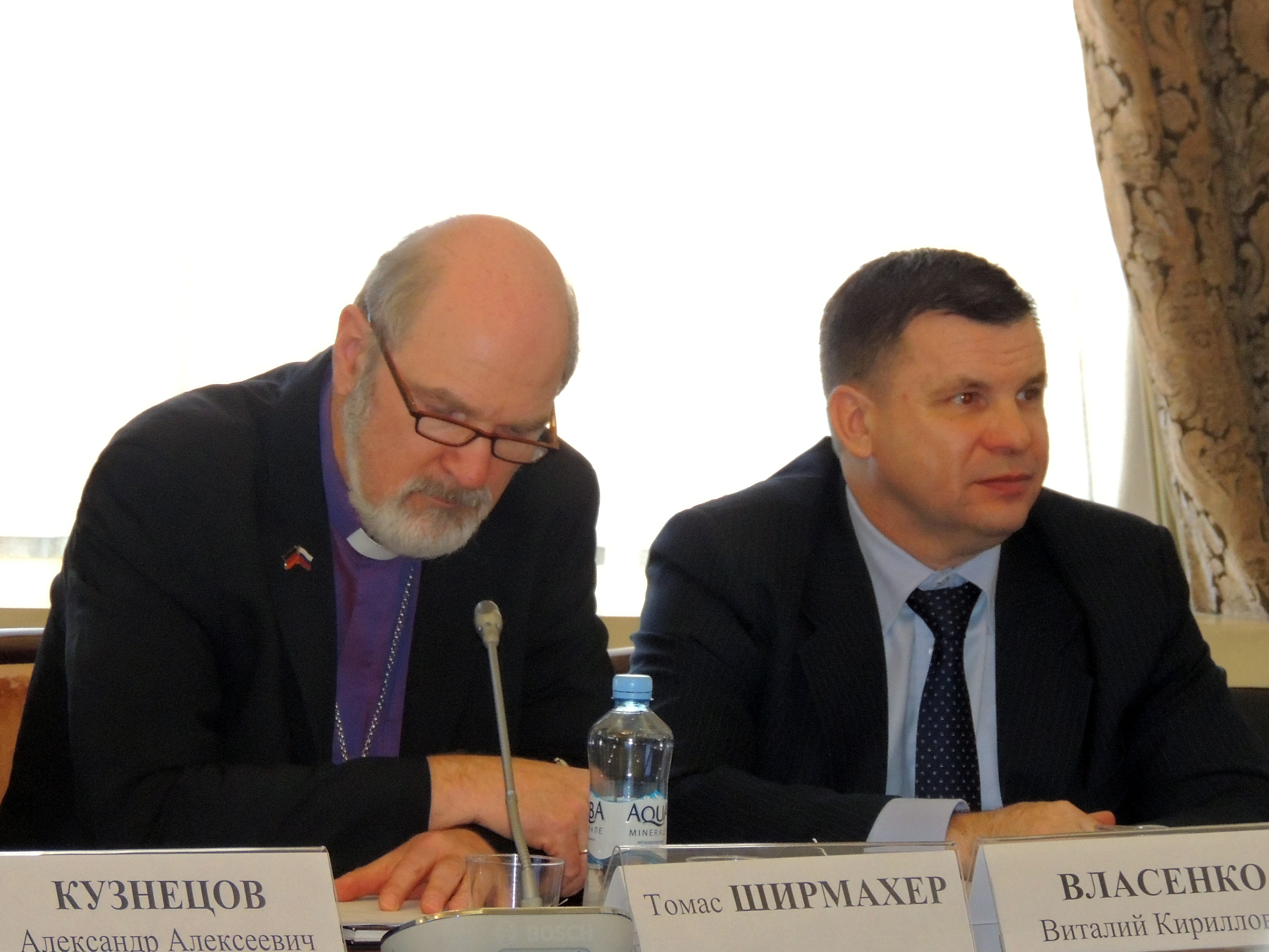 Allerdings hatten Schirrmacher und Vlasenko vor- und nachher den Vorstand der Russischen Evangelischen Allianz besucht und auf einer Konferenz aller führenden evangelikalen Pastoren des Landes gesprochen. Sie fand anlässlich des 150. Geburtstags der berühmten religiösen Persönlichkeit I. S. Prokhanov in der Öffentlichen Kammer der Russischen Föderation statt. In seiner Begrüßungsrede stellte Dr. Thomas Schirrmacher fest, dass I. S. Prochanow ein Vertreter der Weltweiten Evangelischen Allianz war und sehr viel für die Einheit und Entwicklung der evangelikalen und evangelischen Bewegung in Russland getan hat.