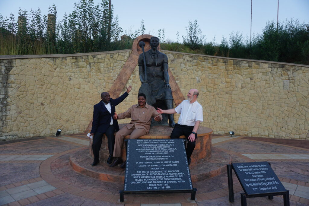 - Foto 3: Am Denkmal des Gründungskönigs von Lesotho (v.l.n.r.): Bischof Dr. G. L. Lejakane, Rev. John Maphephe, Thomas Schirrmacher © BQ/Esther Schirrmacher