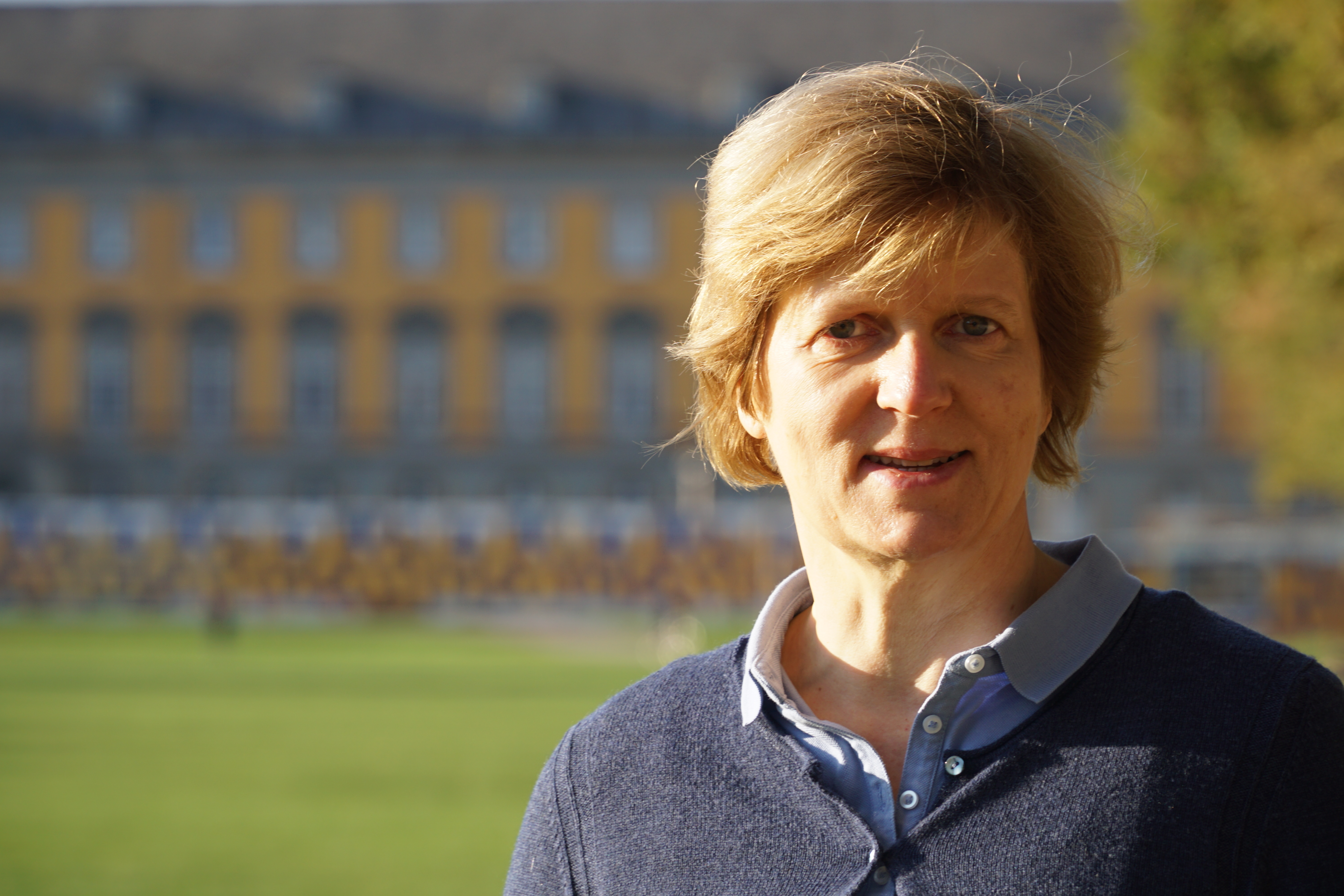 - Foto 4: Christine Schirrmacher vor dem Hauptgebäude der Universität Bonn © BQ/Warnecke