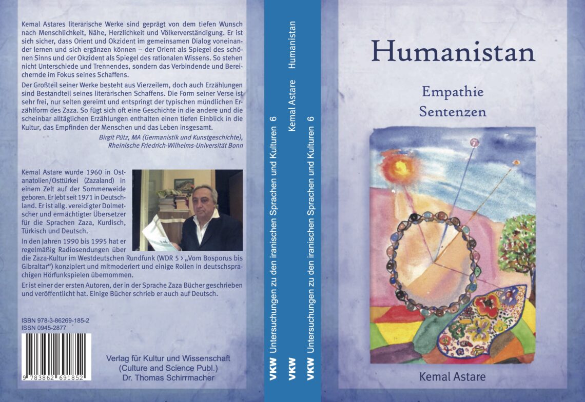 (Bonn, 31.01.2020) Der Bonner Zaza-Dichter und Schriftsteller Kemal Astare hat seine Sentenzensammlung „Humanistan“ im Verlag für Kultur und Wissenschaft in der Reihe „Untersuchungen zu den iranischen Sprachen und Kulturen“ (Band 6) vorgelegt.