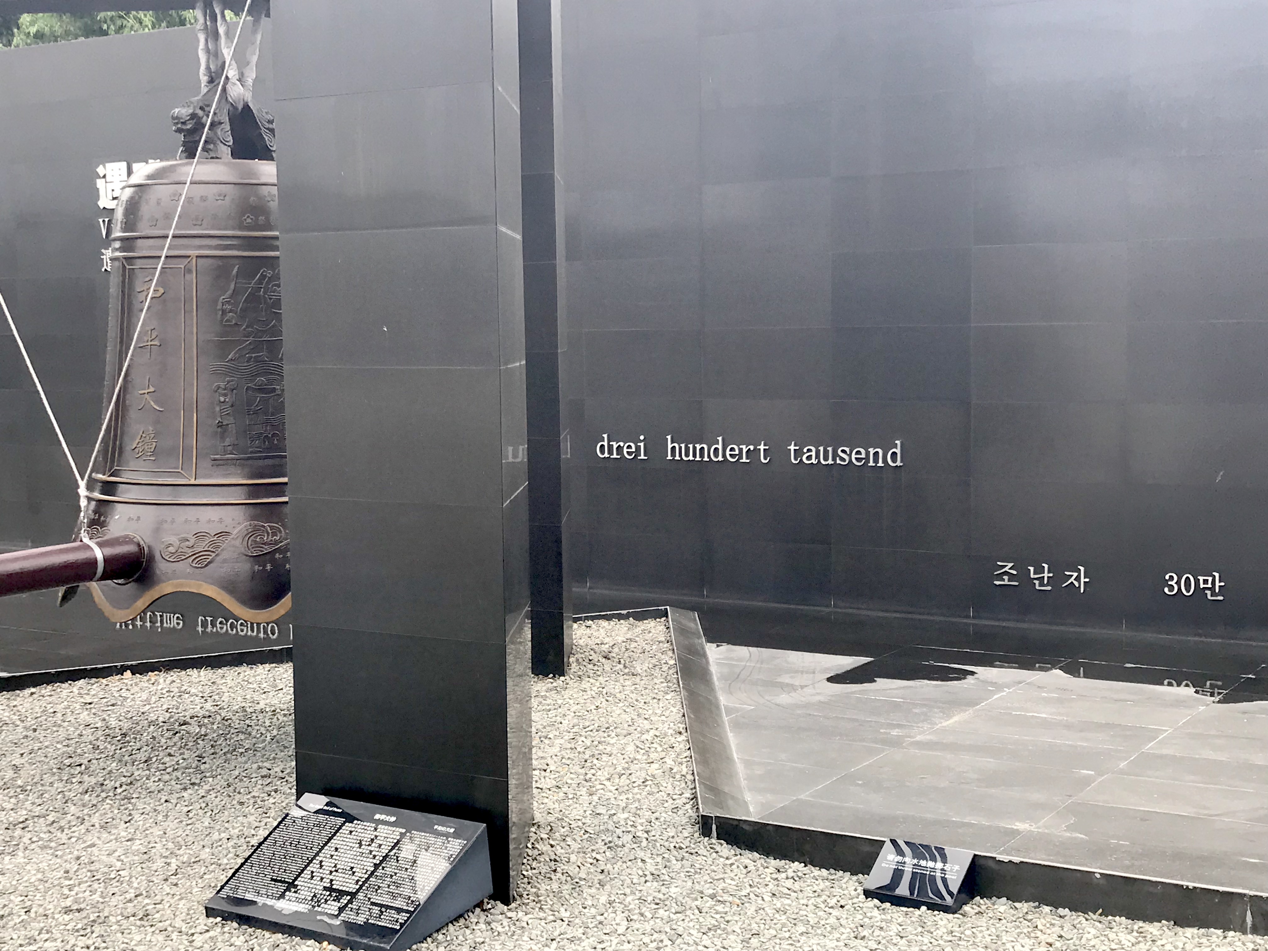 - Foto 2: Opferzahl in deutscher Sprache im Hof der Memorial Hall in Nanjing (China) © BQ/Thomas Schirrmacher