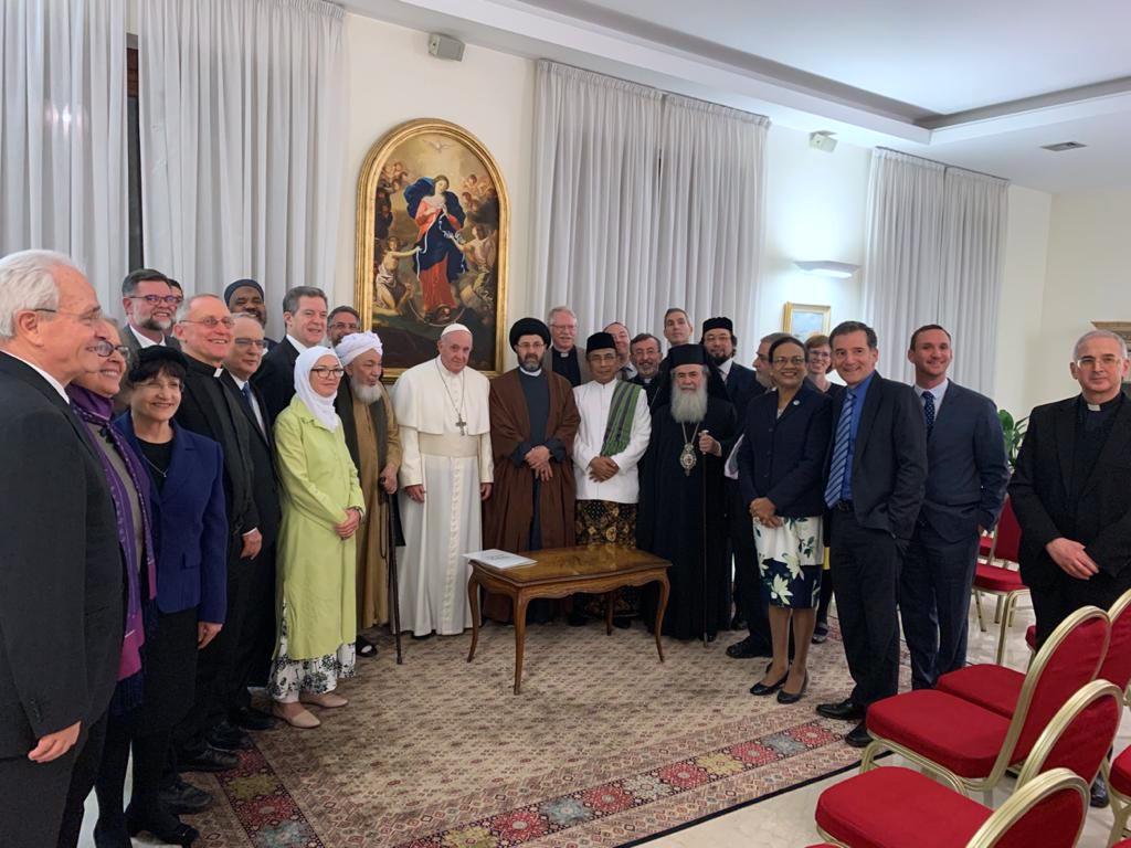 • Foto 1: Besuch bei Papst Franziskus (Zweiter und Dritter auf der rechten Seite des Papstes: Thomas K. Johnson und Kyai Haji Yahya Cholil Staquf) © Thomas K. Johnson