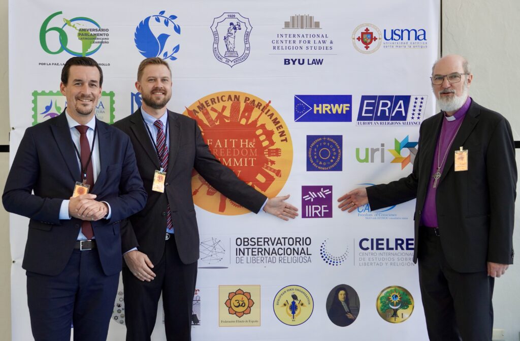 - Foto 2: ISHR-Generalsekretär Matthias Böhning und der Direktor des Internationalen Instituts für Religionsfreiheit (IIRF), Dennis Petri, beim Faith and Freedom Summit IV im Panamerikanischen Parlament in Panama, zusammen mit Thomas Schirrmacher, Präsident beider Organisationen © BQ