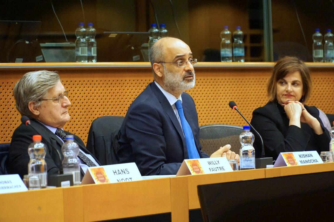 - Foto 1: Dr. Kishan Manocha spricht 2019 im EU-Parlament auf der Konferenz „Faith for Freedom“, organisiert vom FoRB Roundtable EU Brussels © IIRF/Martin Warnecke