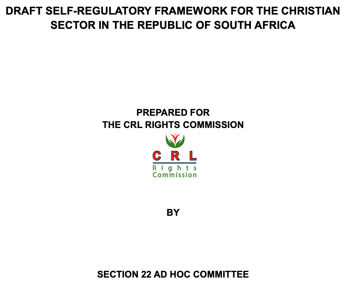 - Ad-hoc-Ausschuss für den christlichen Sektor gemäß Abschnitt 22: Entwurf eines Selbstregulierungsrahmens für den christlichen Sektor in der Republik Südafrika. Entwurf V2, Dezember 2025: https://www.crlcommission.org.za/wp-content/uploads/2025/12/Final-Draft-Christian-Sector-Self-Regulatory-Framework-in-RSA_.pdf